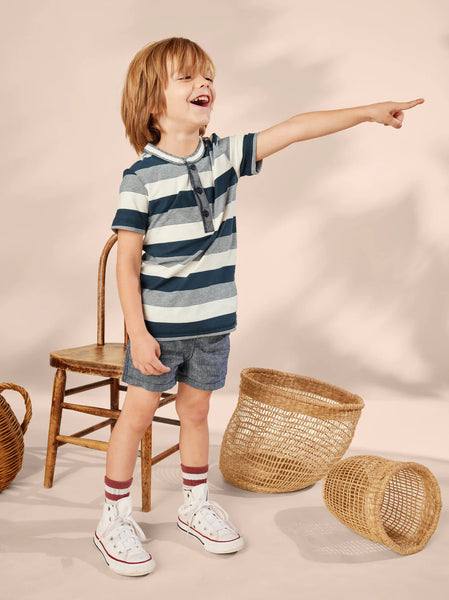 A go-to essential for warm-weather days! These Chambray Drawstring Shorts are made from soft, breathable fabric with a relaxed fit that keeps kids comfortable for all-day play.