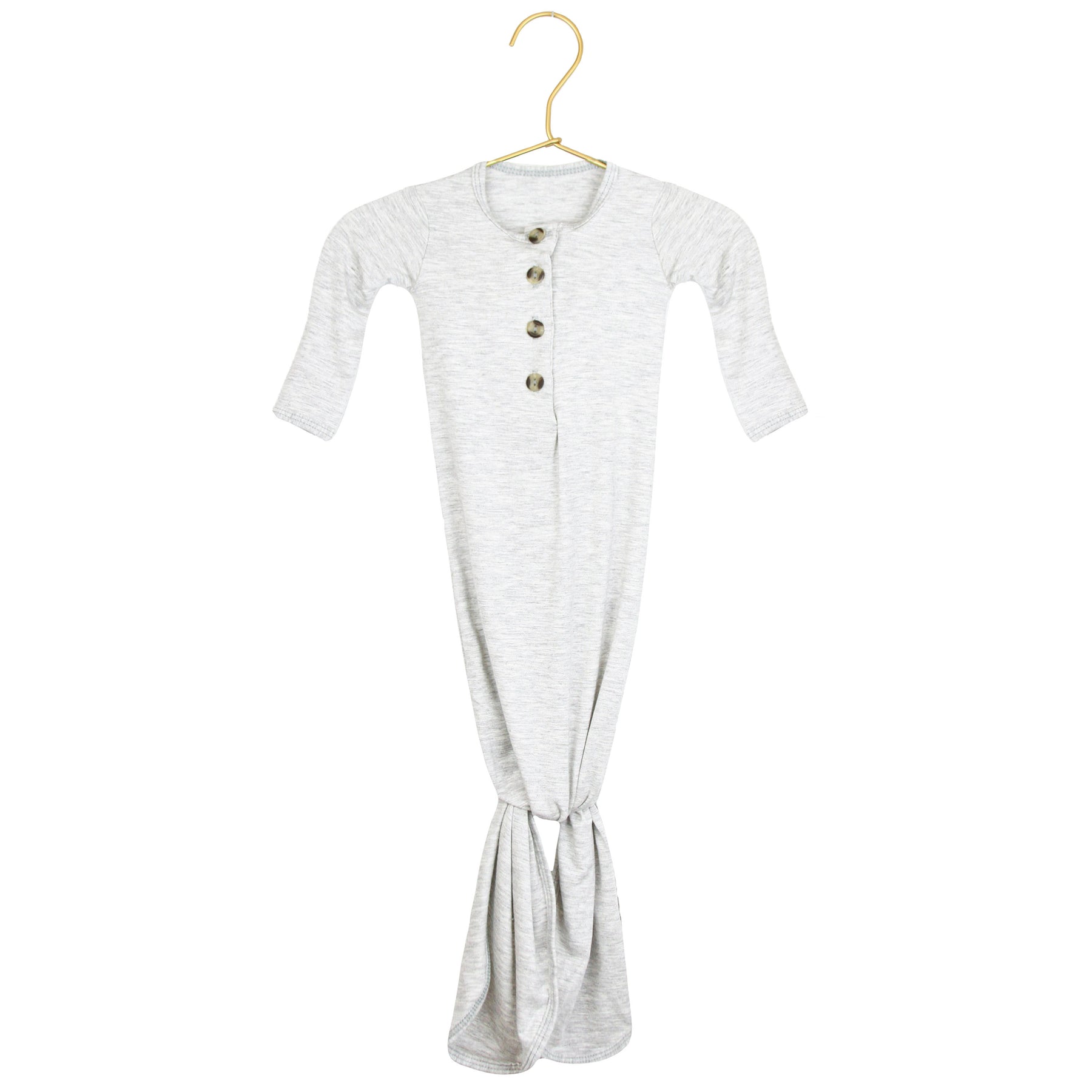 The easiest tie-bottom outfit for day or night. Made for hassle free diaper changes and gentle dressing, I designed this with a button-down front and tie bottom for simple closure (no more snaps at 2am!). Fold over wrist cuffs are the most thoughtful finishing touch.