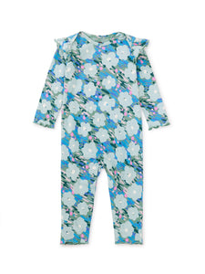 Chalk Water Lillies Ruffle Shoulder Baby Romper