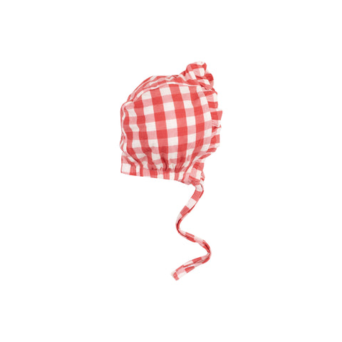 Strawberry Gingham Ruffle Bonnet 0-3 months