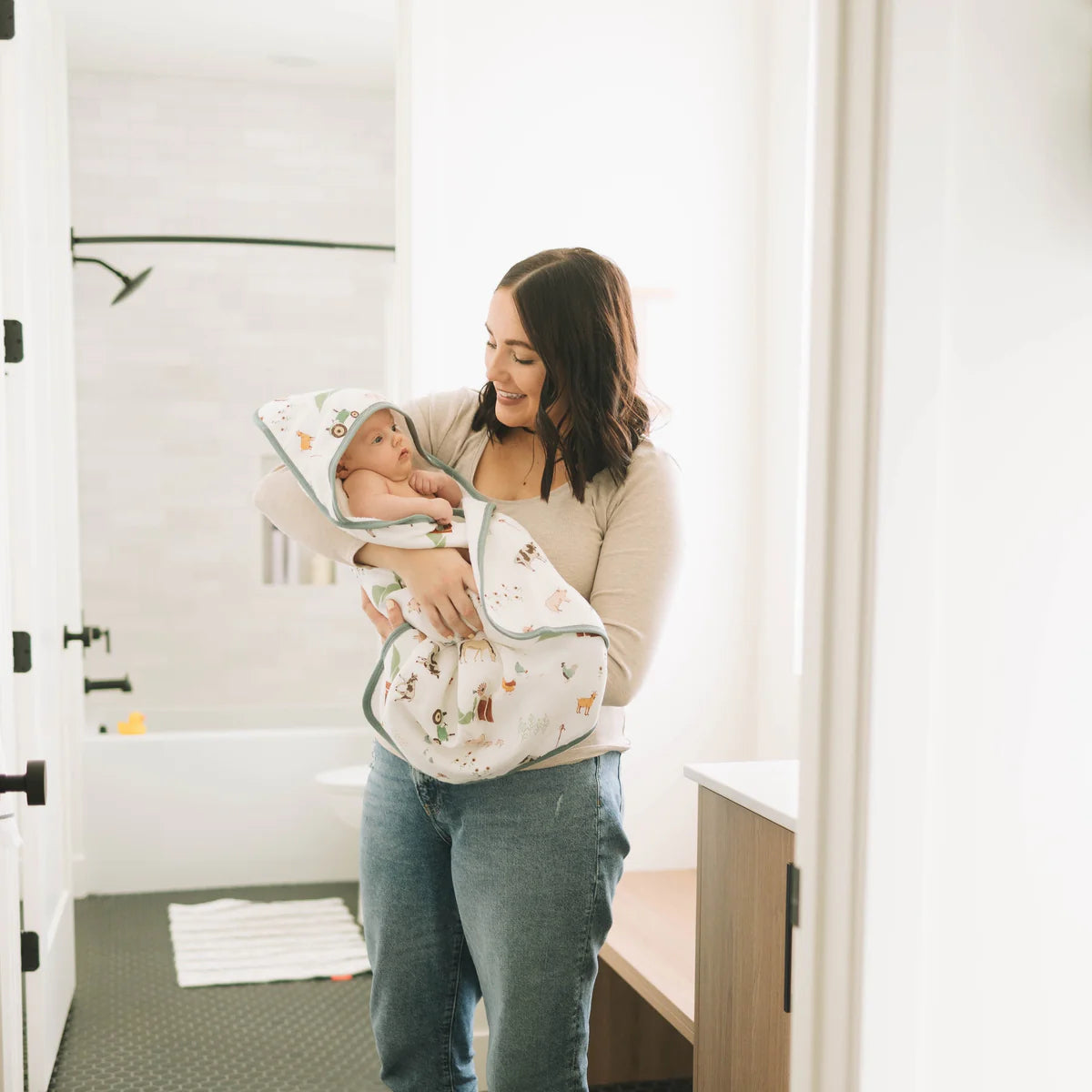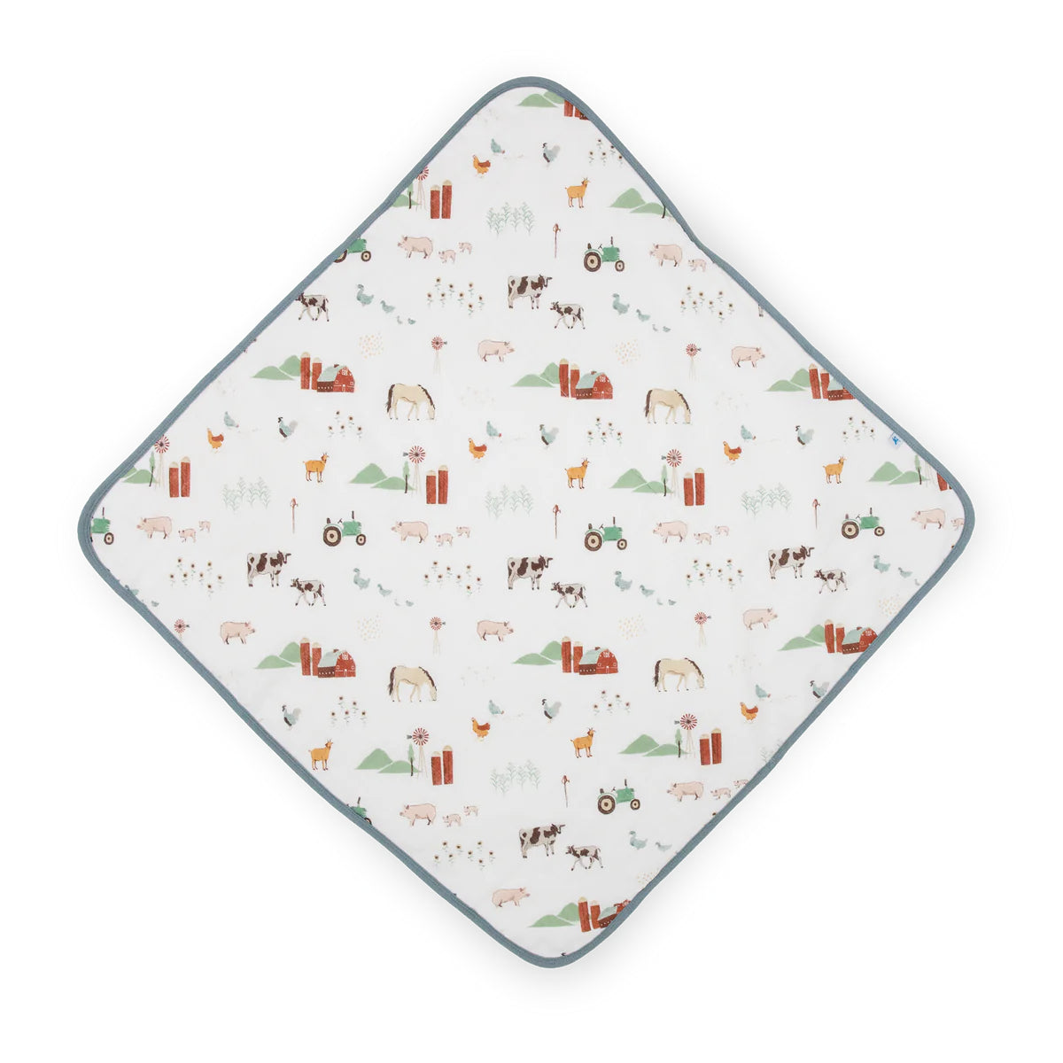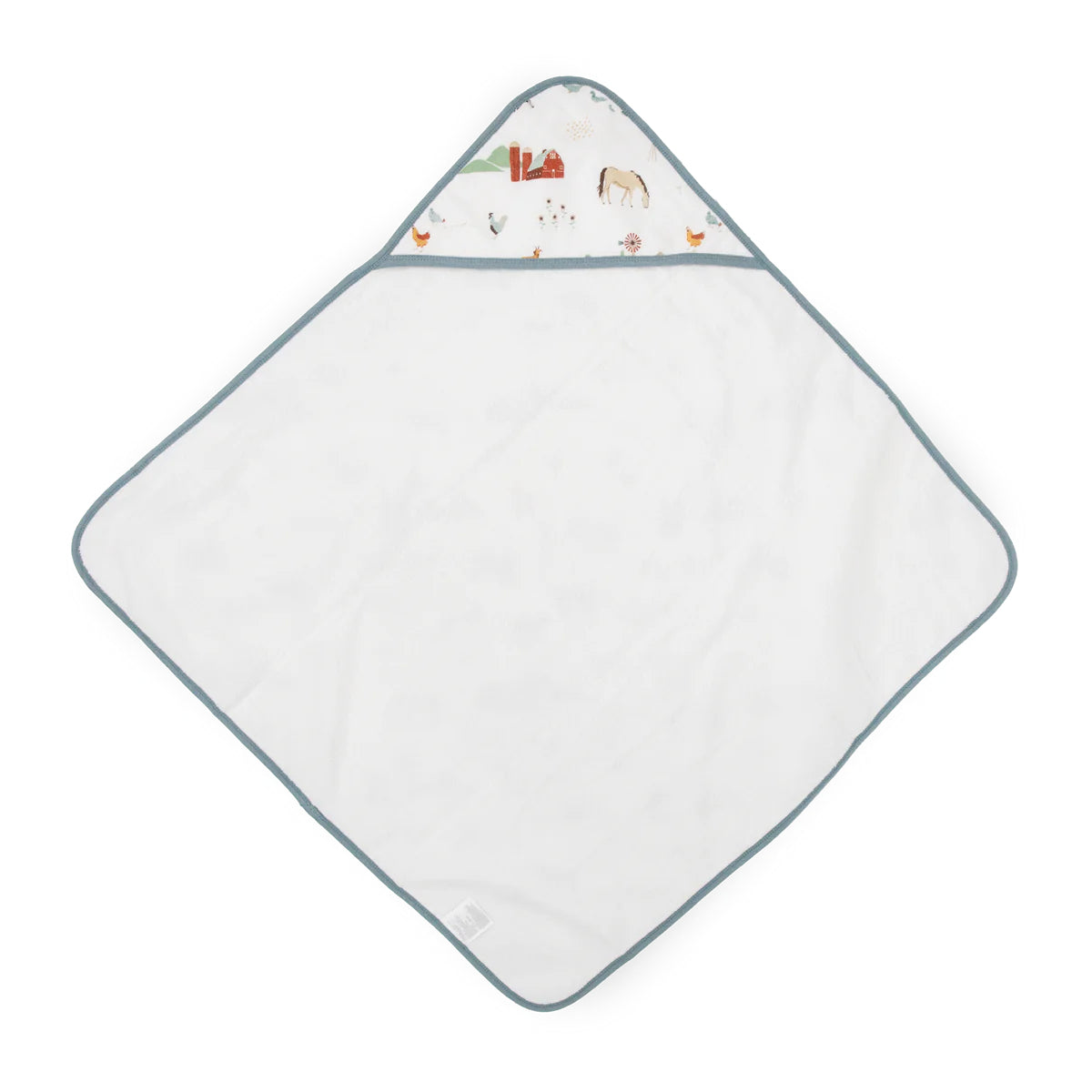Splash into bath time with a plush and absorbent hooded towel. Featuring a cozy hood the hooded towel is crafted with printed muslin on the outside and ultra-soft terry cloth on the inside.