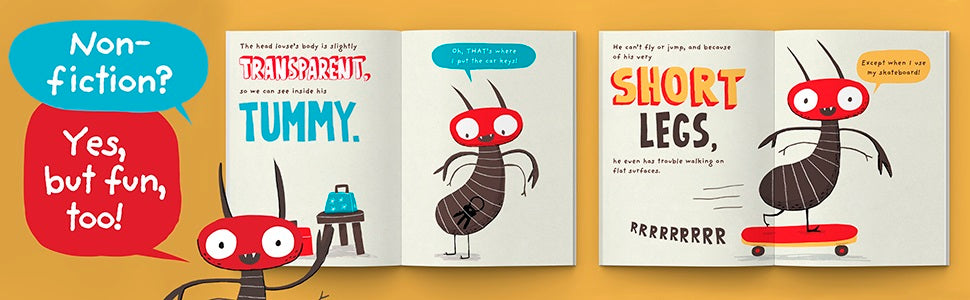 Part of a series of hilarious non-fiction books about disgusting creatures, this book examines head lice. It covers such topics as head lice habitats (human heads only, dogs are gross), anatomy (his body is slightly see through, so he can always see what he ate for lunch), and parenting practice (the female louse sticks eggs to human hair and uses the leftover glue for her model airplanes). Although silly and off-the-wall, Head Lice contains factual information that will both amuse and teach at the same time.