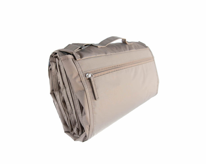 The Bring-It-Everywhere Outdoor Blanket. Designed to handle spills and messes from the park to the beach, the water-resistant, sun printed surface wipes clean for quick and easy cleanup. Featuring a compact and foldable structure with a pocket and convenient carrying strap so you can — and should! — bring it everywhere.