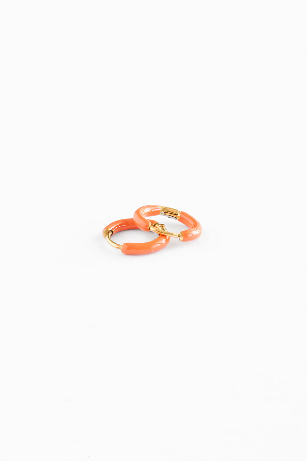 Hypoallergenic Gold and Tangerine Enamel Hoops