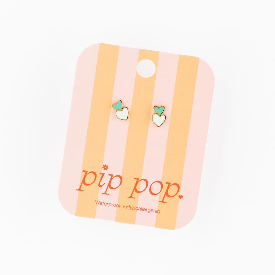Hypoallergenic Gold & Enamel Heart Stack Earrings