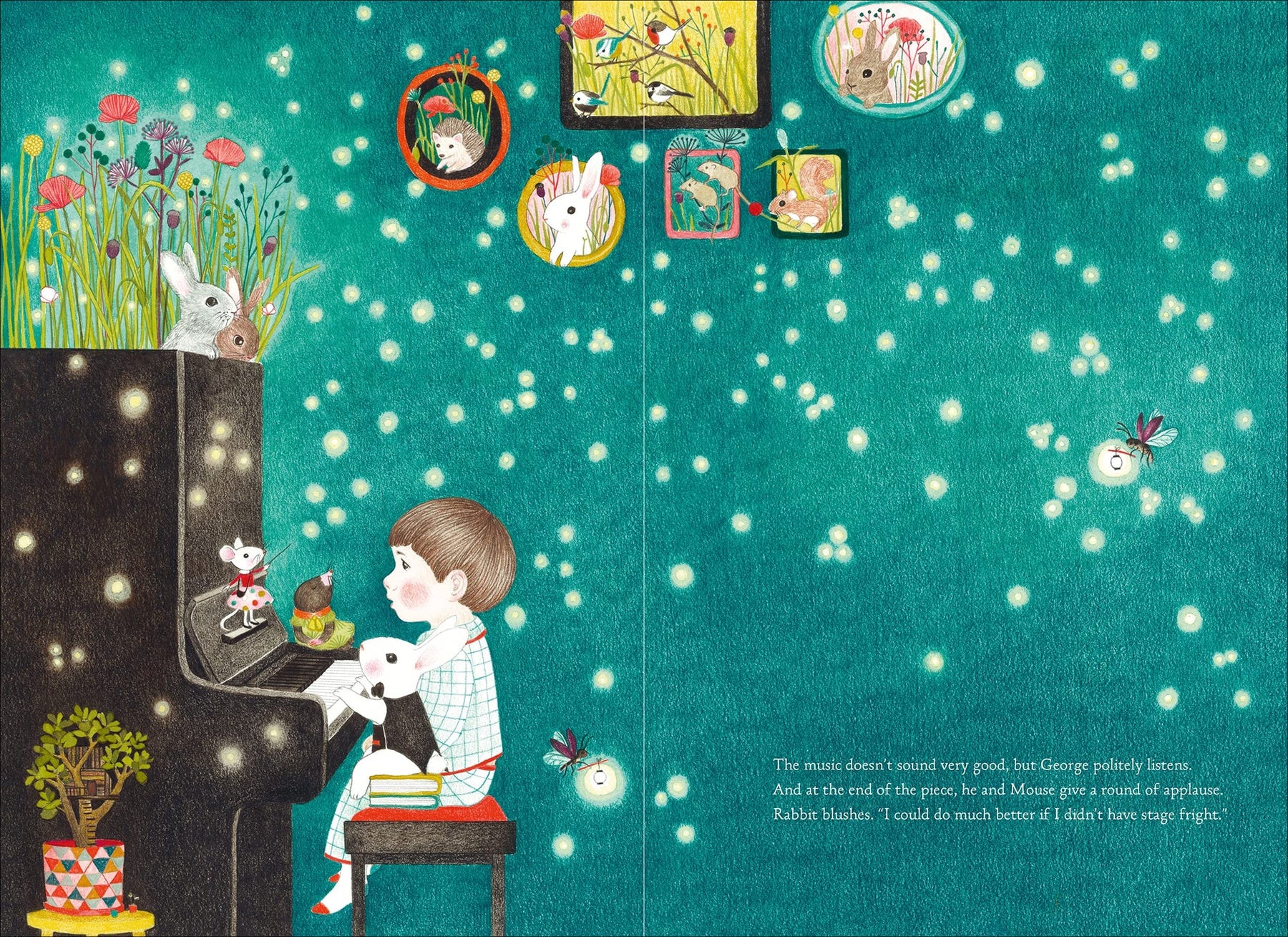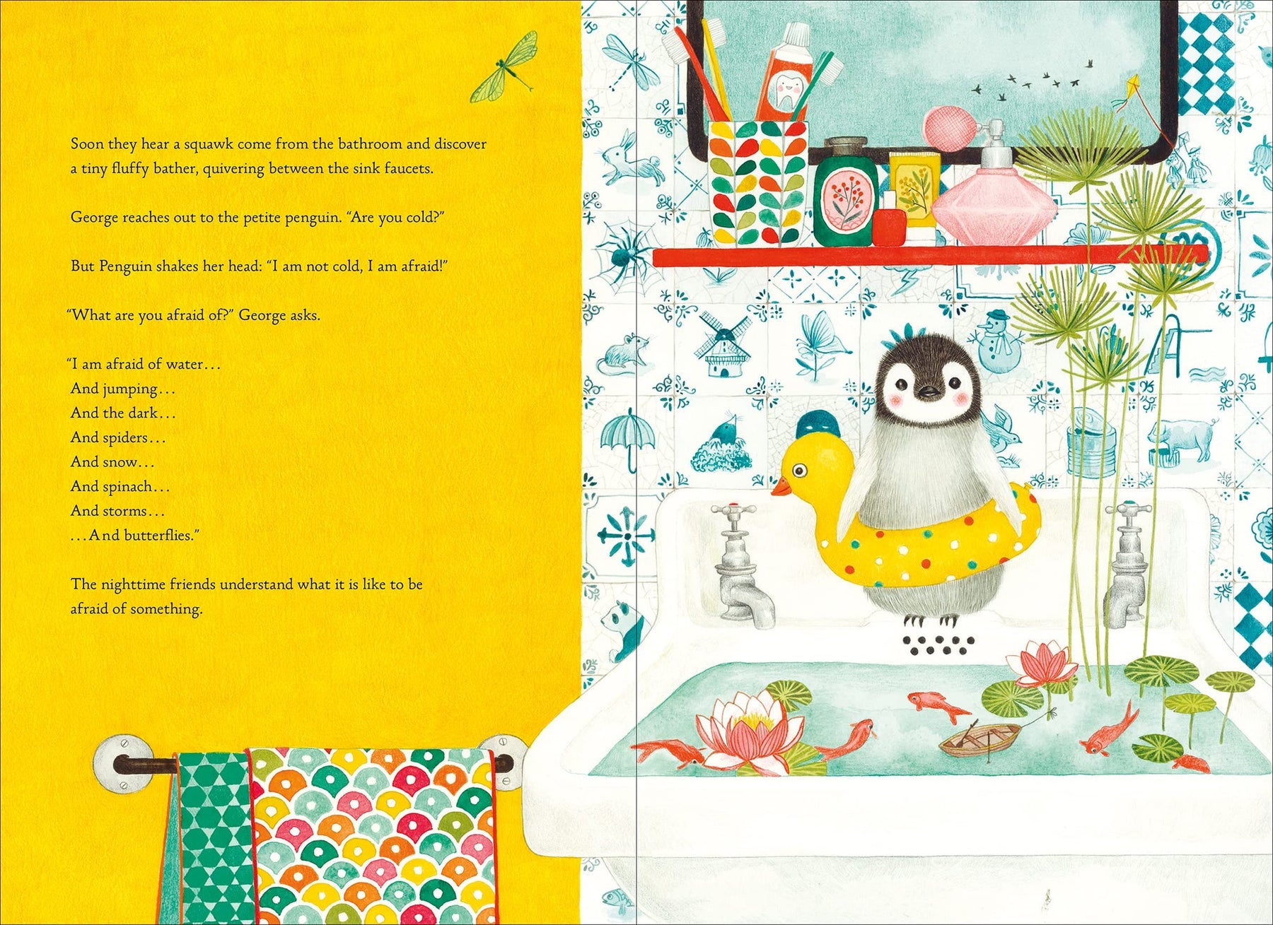 In his cozy house on his cozy street, George slips into bed, but. sleep will not come. He is afraid of the dark and wishes for even one small nighttime friend to help him. When a little mouse appears, a night of adventure begins. George meets new friends, like a piano-playing bunny with stage fright and a penguin afraid of water. He learns that everyone has fears, and good nighttime friends can help you overcome them all—and have fun along the way! Each page is filled with stunning, vibrant details perfect for an imaginative bedtime story. Fans of the Miyuki series will be delighted to discover this new classic, for the first time both written and illustrated by Seng Soun Ratanavanh.