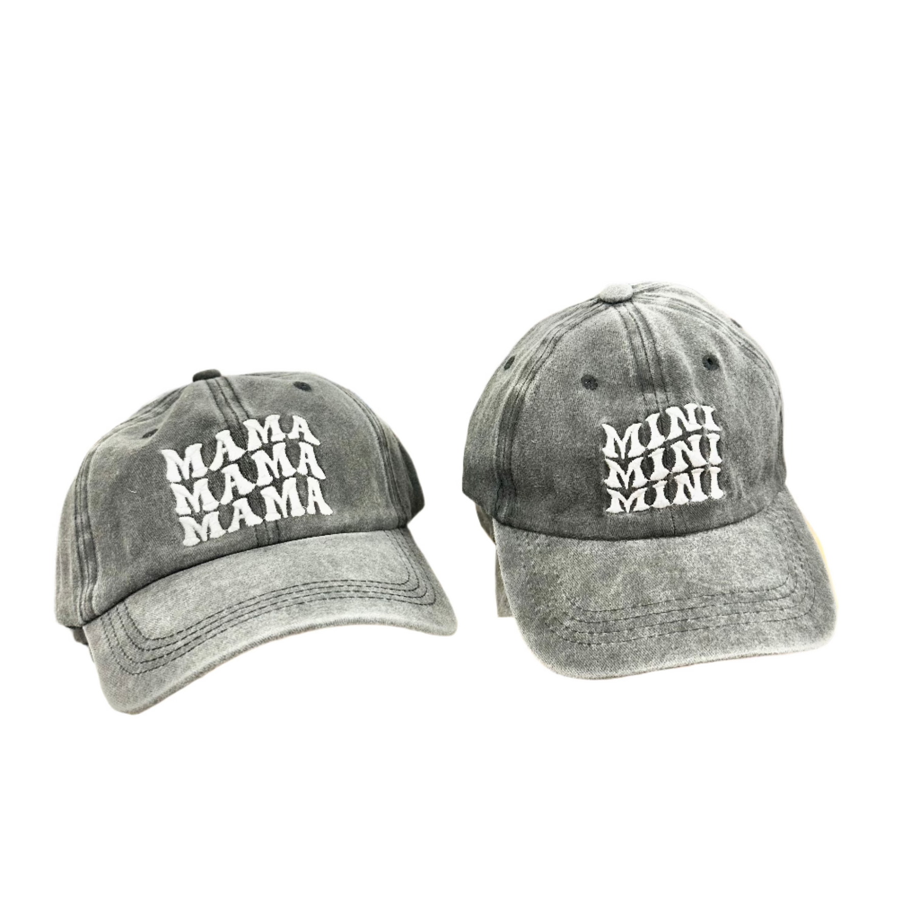 Mama and Mini hats for you and your little one! This is the perfect neutral hat to keep the sun off your face and add style to any outfit this summer. Whether you're going to the grocery store or a baseball game, this hat is a great accessory.