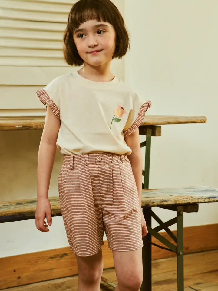 Add a touch of charm to your little one's wardrobe with this Kids' Baby Toddler Ruffle Sleeve Flower Embroidery T-Shirt. This adorable short-sleeve top features delicate striped ruffle sleeves and intricate floral embroidery, creating a sweet and stylish look. Made from soft, breathable fabric, it ensures all-day comfort for active toddlers and kids. Perfect for casual outings, playdates, family gatherings, or everyday wear, this cute and trendy t-shirt pairs effortlessly with jeans, leggings, or skirts for a fashionable touch!