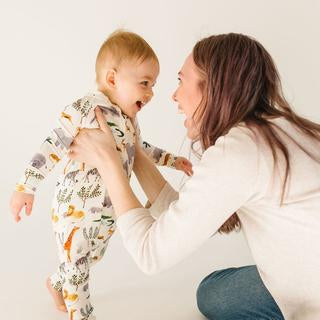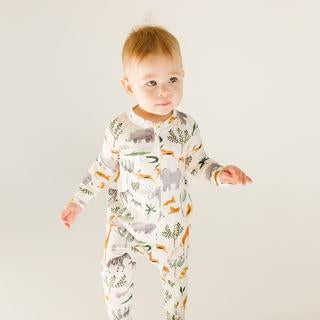 This soft and breathable sleeper is covered in a colorful and playful safari animal print, accented with fitted cuffs. The 2-way zipper extends all the way down the leg for easy dressing and changes.