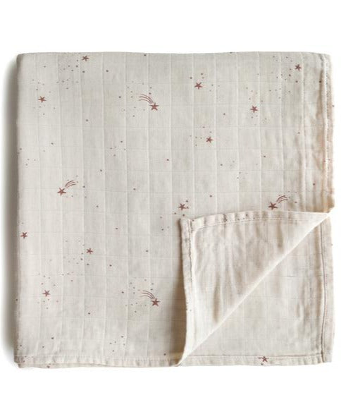 Cute little pops of dainty stars cover this soft and breathable muslin swaddle blanket. Lightweight and comforting, this swaddle will keep your newborn cozy and happy, which makes mama happy, too.