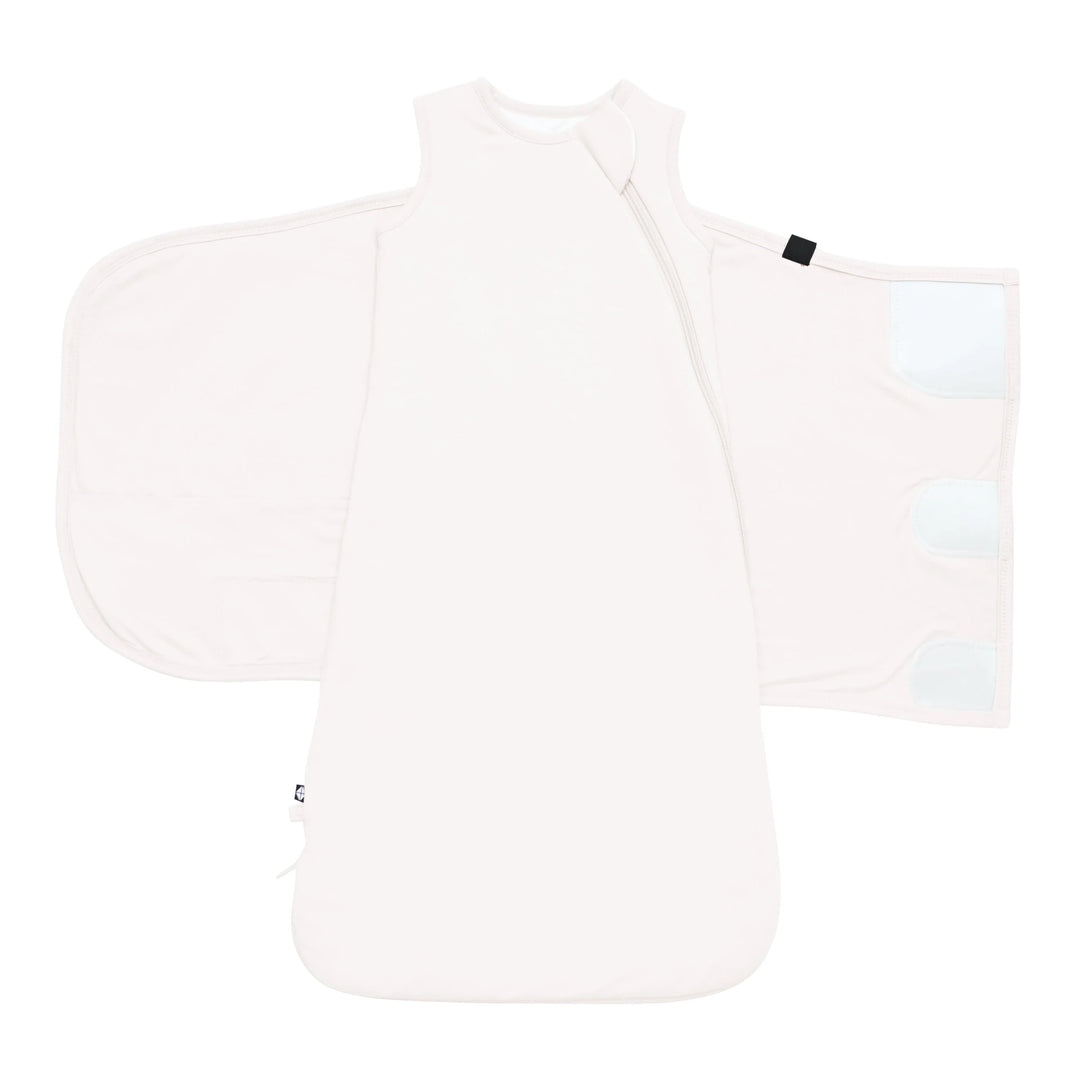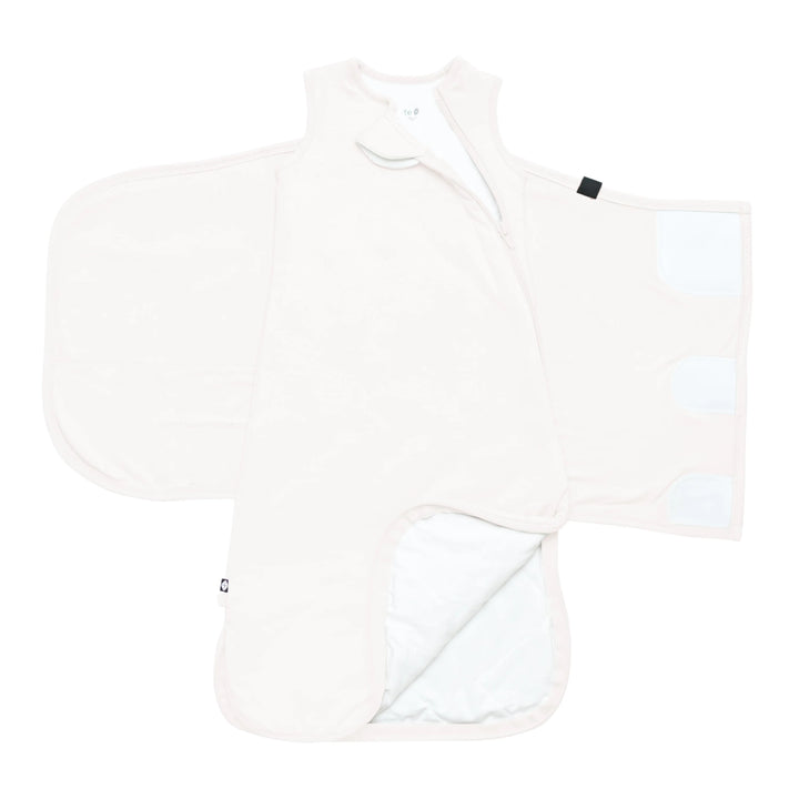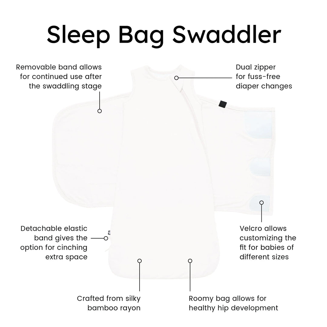 Our redesigned Sleep Bag Swaddler is an all-in-one sleep system that comforts your baby from the newborn stage to the next. Made from our signature bamboo rayon, our patent-pending sleep bag swaddler functions as both a swaddle and a 1.0 sleep bag. The attached swaddle wrap features a Velcro closure for a secure and adjustable fit, and is fully removable once swaddling is no longer recommended. There's also a removable elastic loop that is fastened with a snap closure that can be placed around the bottom of the sleep bag. The additional step of tightening the sleep bag helps for little ones who haven’t fully grown in to their new sleep bag yet. Underneath the wrap is our award-winning sleep bag, which acts as a wearable blanket to reduce the risk of SIDS and improve your baby’s sleep.