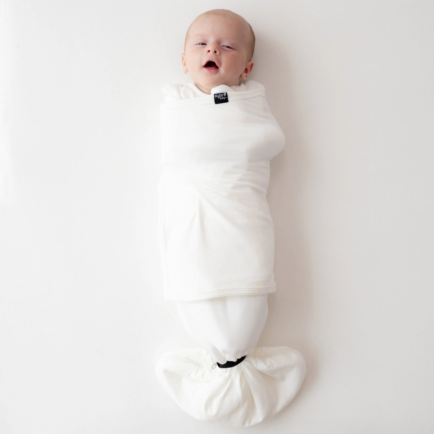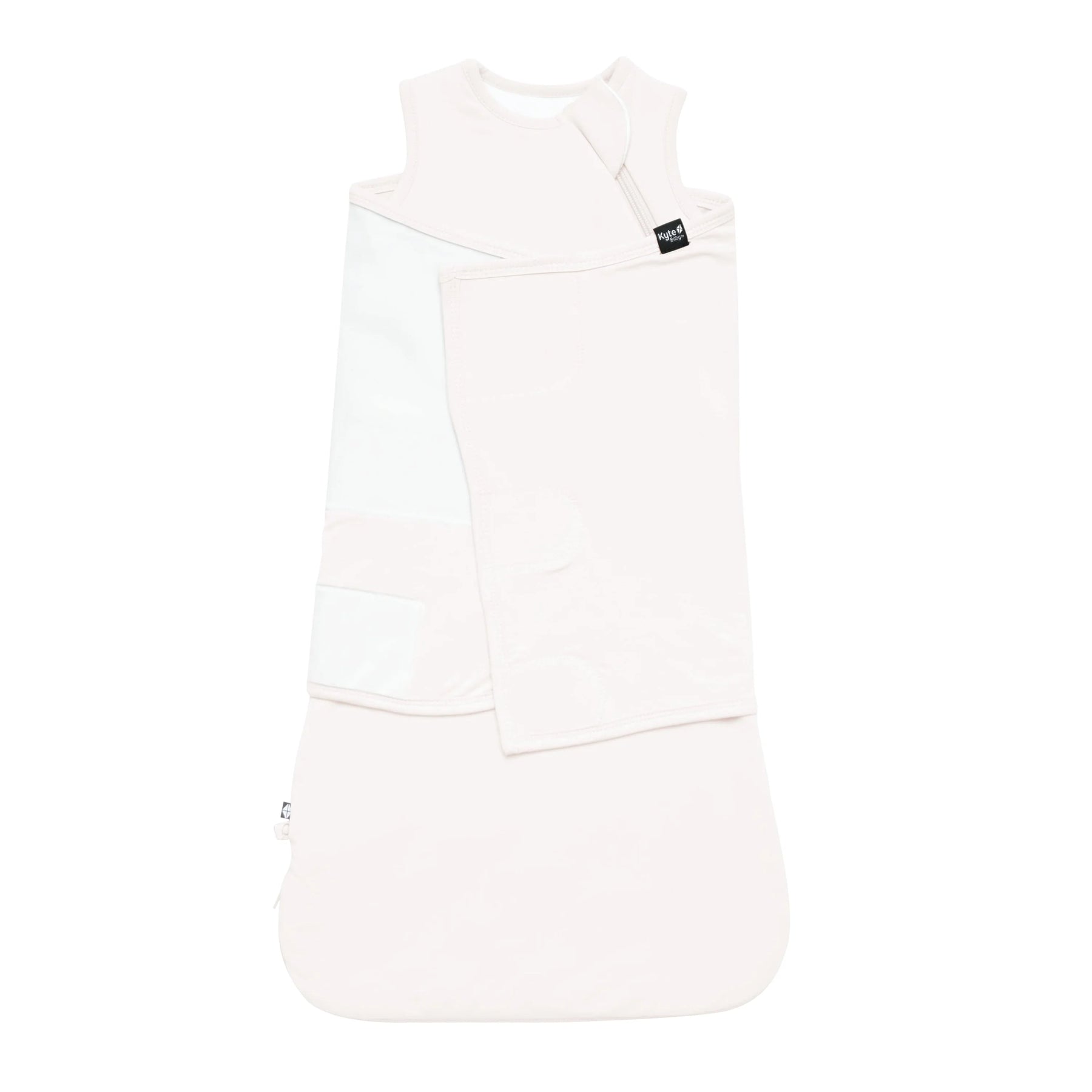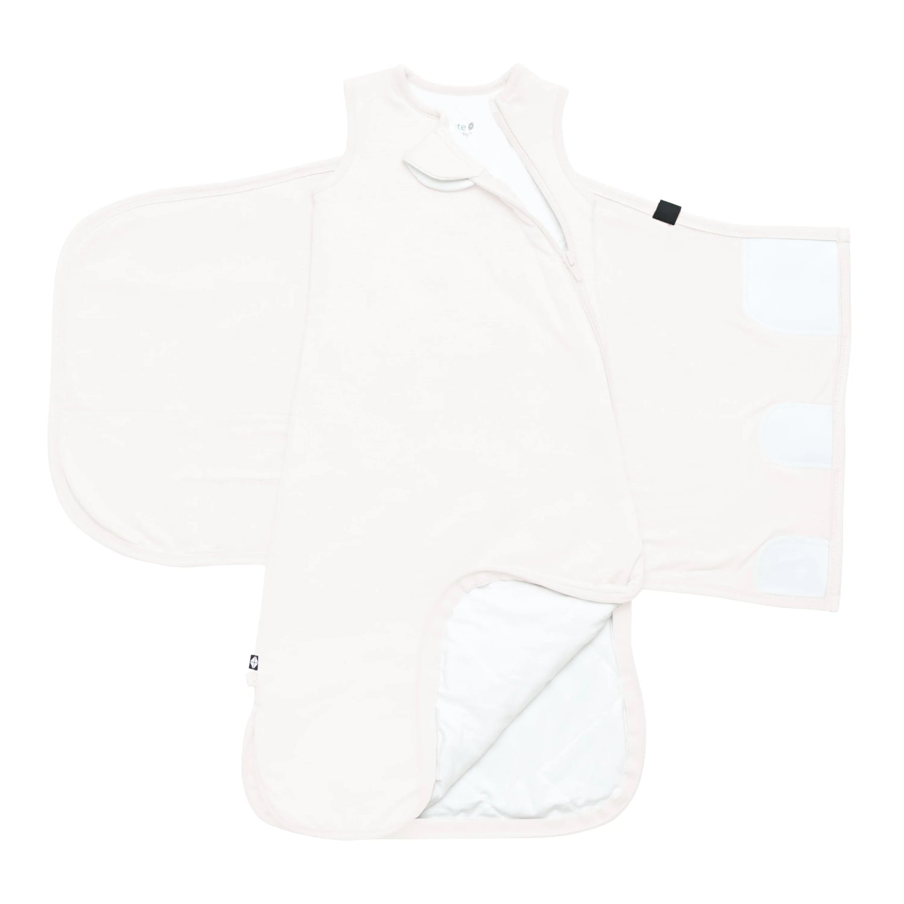 • Fully removable swaddle wrap attached to the sleep bag via Velcro, which allows for different positioning of the swaddle as baby grows.
