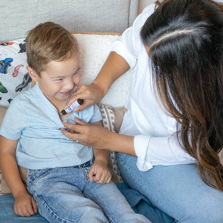 Each essential oil that makes up Nighty Night was carefully chosen to not only be safe, but effective when trying to create an atmosphere that is ideal for children to fall asleep. The blend is tranquil, warming, balancing, relaxing, and supports clear respiration, which is the perfect formula to calm little ones to help them fall asleep and stay asleep. A parent’s favorite and every child’s dream, Nighty Night is the ideal addition to your child’s bedtime routine.