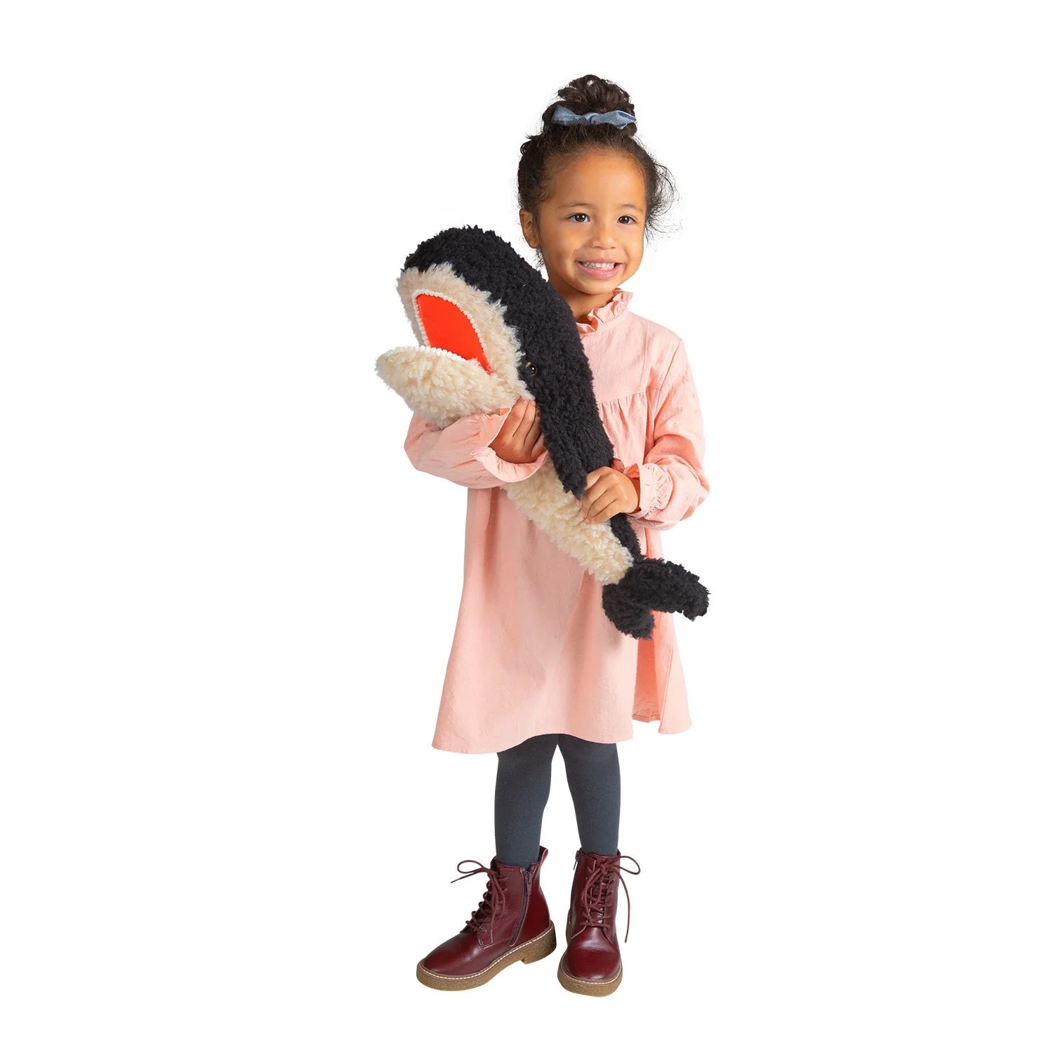 A whimsical gem, imaginaries whale has luxuriously soft textures, a poseable mouth, and a floppy tail to make snuggling come to life!