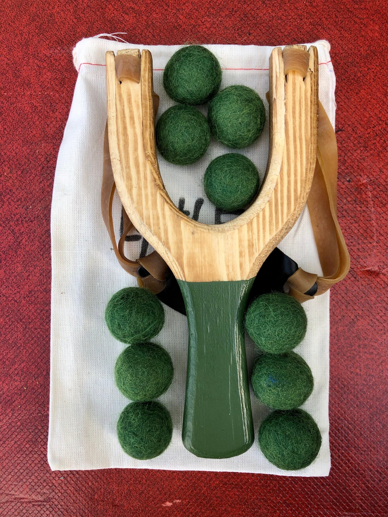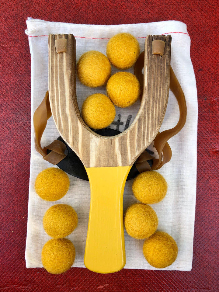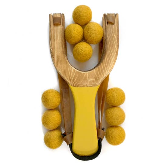 These simple wooden slingshots are perfect for any high energy kid (or adult), plus the 10 wool felt balls that come with each toy makes for gentle play. Muslin bag is included for storage.