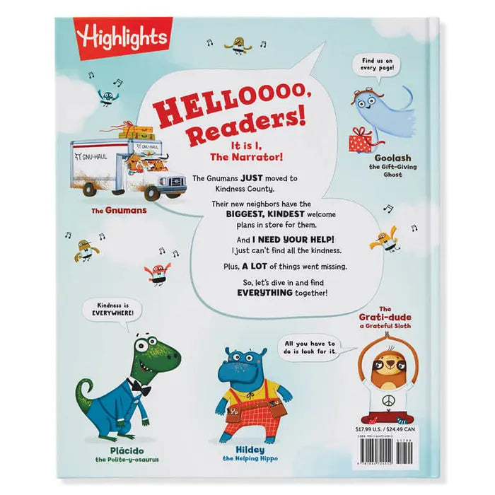 The Gnumans are moving! And they are in for quite an adventure. Packed with hilarious details, larger-than-life characters and endless amounts of kindness, this zany read-aloud story reimagines classic search-and-find books with a whole new world of fun. With its focus on kindness, friendship and community, Find the Kind makes a perfect gift for kids ages 3-6.