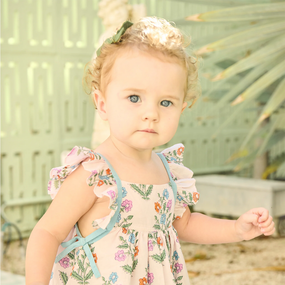 Pink Dewdrop Block Print Ailee Dress w/ Bloomers