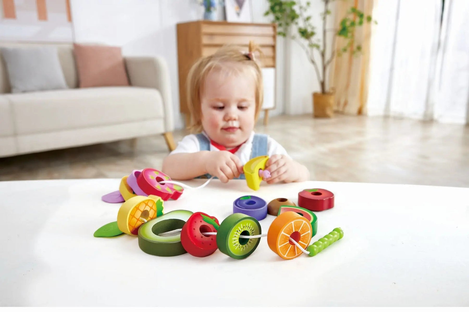 Each time one of your caterpillars nibbles through a new piece of fruit you can add it to the string until you have a whole line of delicious snacks! Caterpillar is long to allow for easy threading of the fruit pieces.