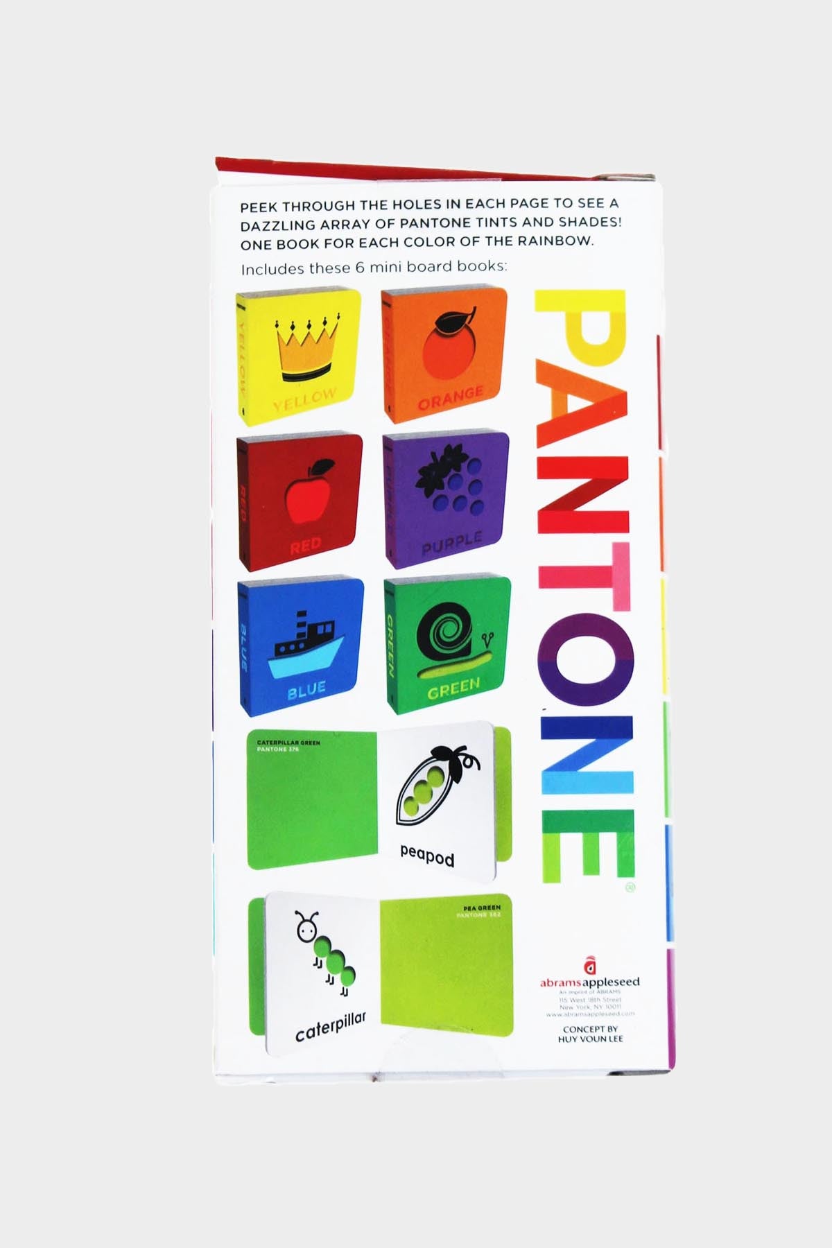 With a volume for each color of the rainbow, these six mini chunky board books feature simple peek-through cutouts that transform as you turn the pages. Simple text prompts parents and children to label objects and observe lighter and darker shades of the same color family.
