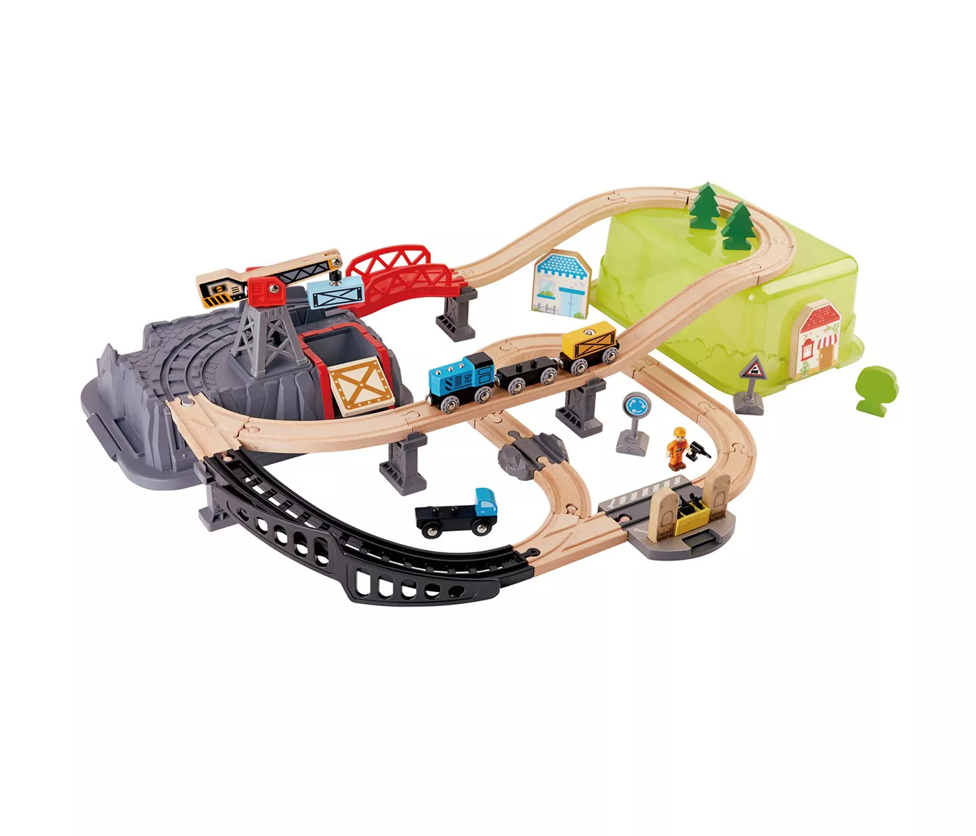 Move the train, passengers, and cargo around the track with ease and play for hours. Easily clean pieces with a damp cloth. Includes 50 railway pieces.