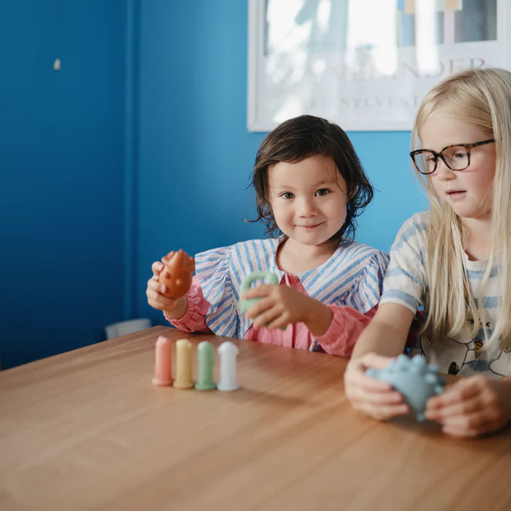 Make a splash at bathtime with the Mushie dino bath play set that includes three friendly dinosaurs and an egg with adorable baby dino nestled inside. Made from 100% food grade silicone, the soft material is easy for little hands to hold while wet or dry.
