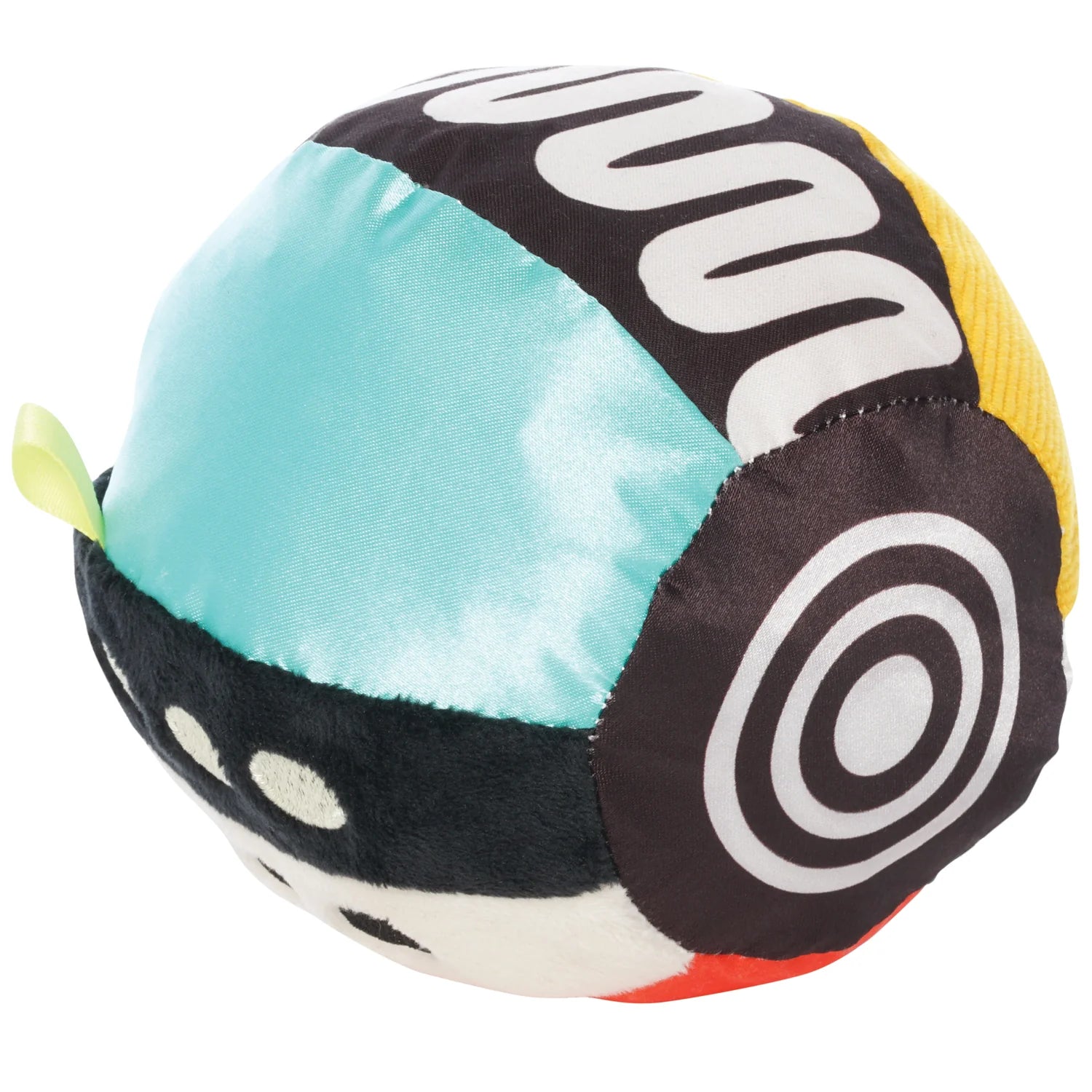 The ball with it all! Bright colors, high-contrast graphics, a chime, and various fabric textures for sensory exploration and motor development for babies and beyond.