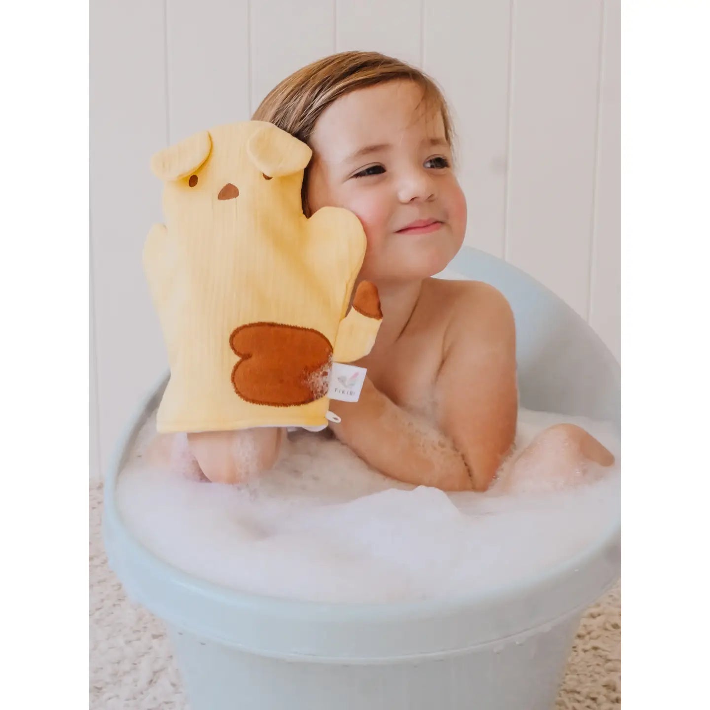 Our farm bath mitts for babies are designed to be extra gentle and soft to protect your baby's skin during bath time. Designed with 2D details and made from incredibly soft, machine-washable cotton muslin fabric. Choose from any of our delightful characters or collect them all.