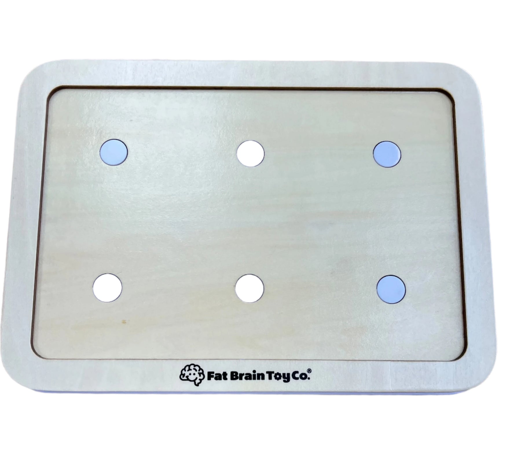 Each sensory tile can also be used on its own—perfect for keeping little hands busy in the car, on a highchair, or during travel. Bonus: the tiles have magnetic backs so they’ll stick to metal surfaces too!