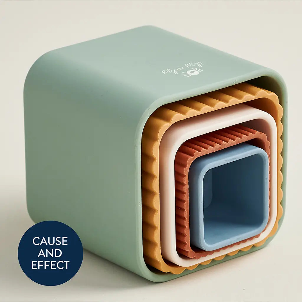 Sprinkle, stack & nest! Pour on the fun with Itzy Sprinkle™ stacking and nesting cups. Featuring adorably patterned drain holes for pouring and play, these bath toys promote cognitive development and encourage early motor skills.