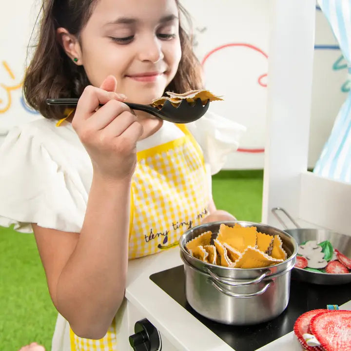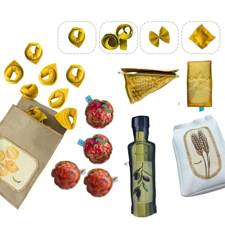 Get ready for an Italian culinary adventure with our Tula's Pasta! Inside, you'll find a pasta game where you can choose from three delicious options: tortellini, ravioli, or farfalle. We've also included mouthwatering meatballs made from the finest ingredients. Mix and match your favorite pasta shape with these savory meatballs to create a delectable Italian meal that's perfect for playtime. Get ready for a taste of Italy that's as fun as it is appetizing!