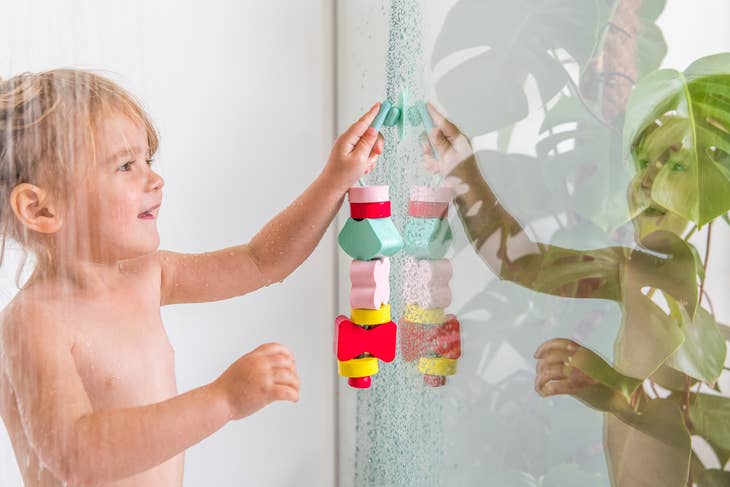 Your kid’s very first lacing beads! Quut Beedi are brightly coloured lacing beads in soft EVA foam. Thanks to the larger shape they are perfect for smaller hands! Stimulate your kids’ cognitive ability and enhance their hand-eye coordination. Use the suction cup to hang your kid’s creation on your bathroom wall and give the room a kids friendly touch. Different shapes and colours = Endless variations