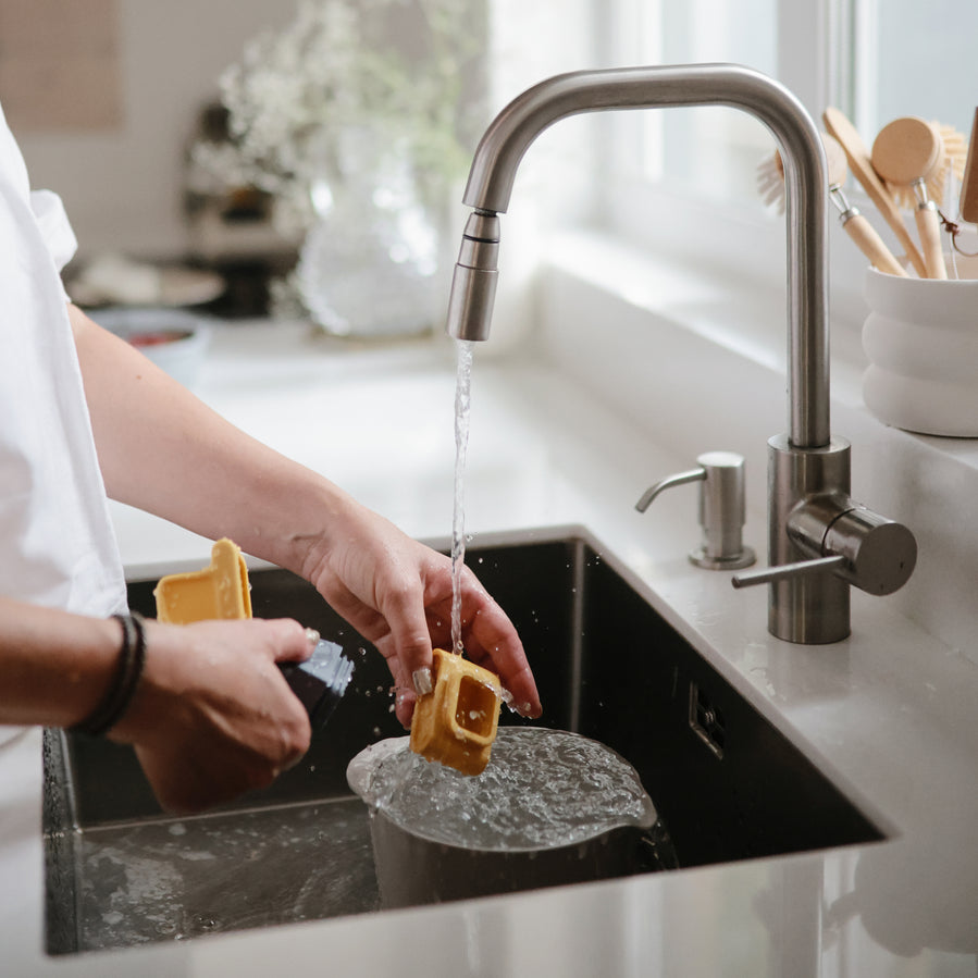 Dishwasher safe. After each use, we recommend opening the pieces to rinse out and air dry before storing.