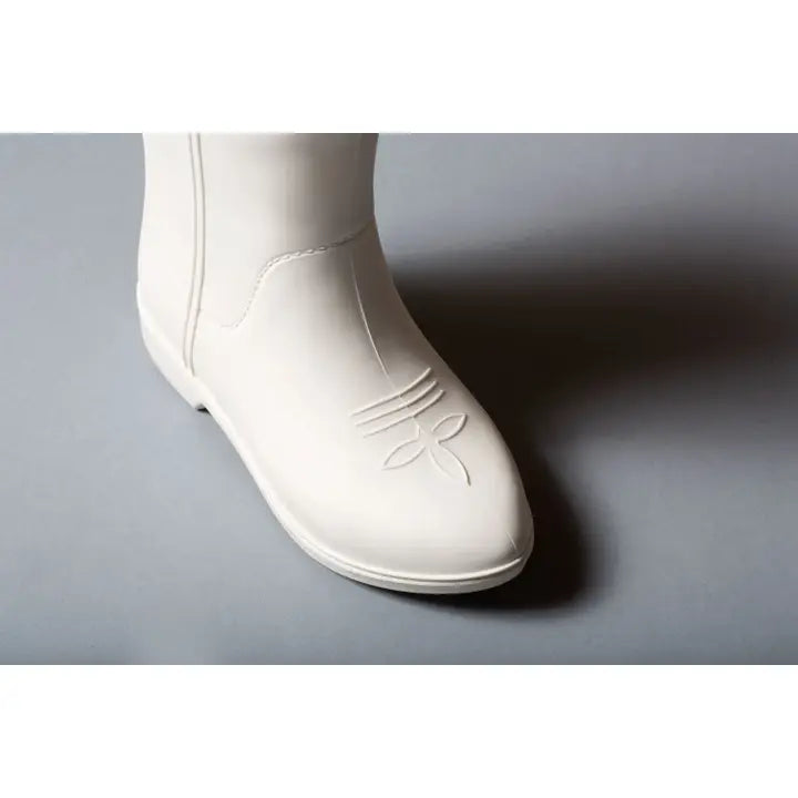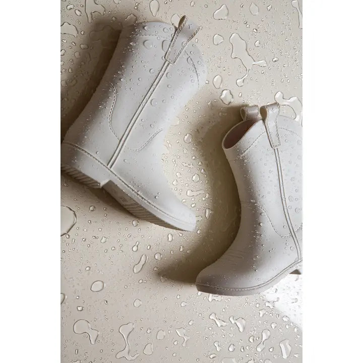 Clean, bone white kid's all weather rubber cowboy boots that check everything on your list—affordable, tough as nails, and just as comfy as they are cute. Kid-approved for getting outside, getting dirty, and getting in the good kind of trouble…these boots are ready for whatever your little tumbleweed throws at ‘em.