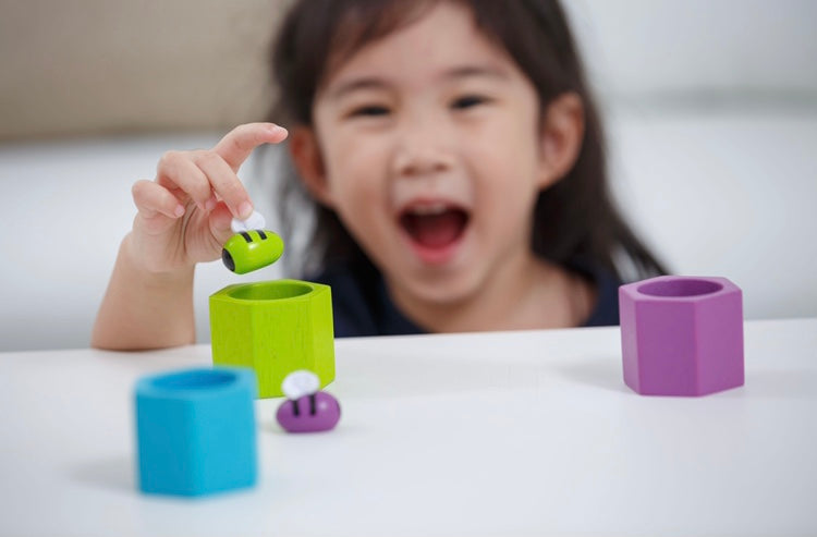 Help develop fine motor skills by matching the bee to its hive using the pincer grasp or the forceps. It also reinforces color recognition and counting.
