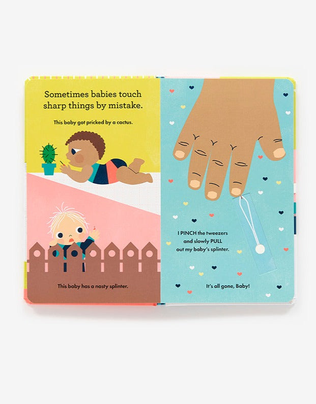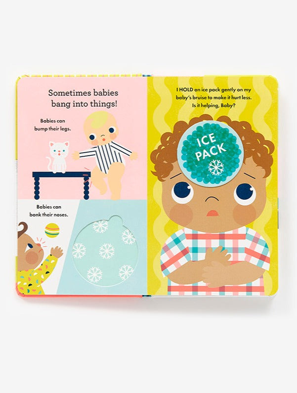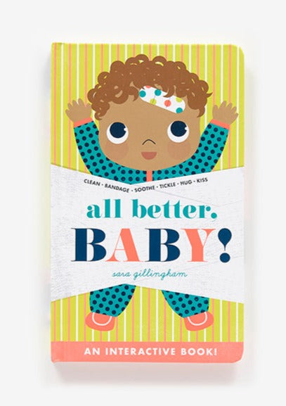 All Better, Baby! is an interactive novelty board book that plays like a doll and reads like a gentle manual about how to soothe a baby. Gillingham has incorporated real tactics for newborn care, giving the text an authenticity and purpose. Interactivities include putting a bandage on a scraped knee, rubbing ointment on an itchy bug bite, and more, and are all accompanied by tender, instructive narration. Perfect for soon-to-be older siblings or doll-crazy toddlers, this book encourages children to read while they play, and practice empathy and care.