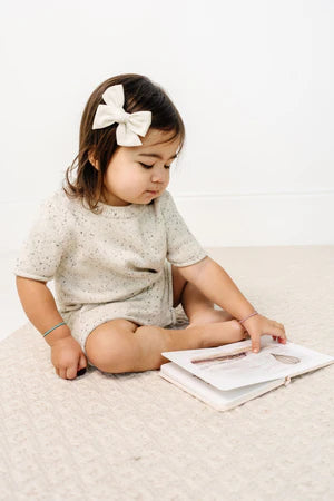 Lou Lou and Co's Heirloom Knit Short Sleeve Tee, designed to keep your little one comfortable and stylish all day long. Crafted from soft, breathable cotton, this tee ensures optimal comfort during playtime or rest. Its relaxed, loose fit offers a chic and modern look, perfect for any occasion. Elevate your child's wardrobe with this timeless essential.