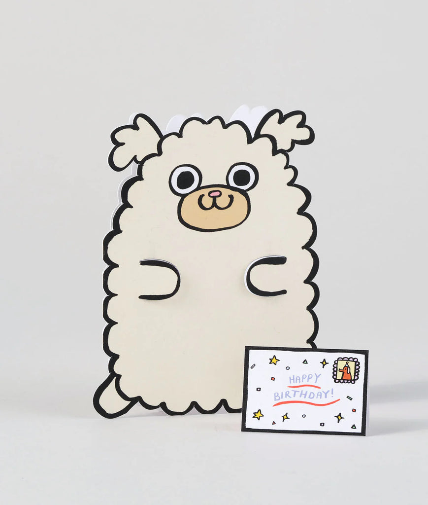 A cute little birthday dog with a small extra card included. This cute fluffy pup is a crowd-pleaser, designed by Alice Bowsher in her fun style