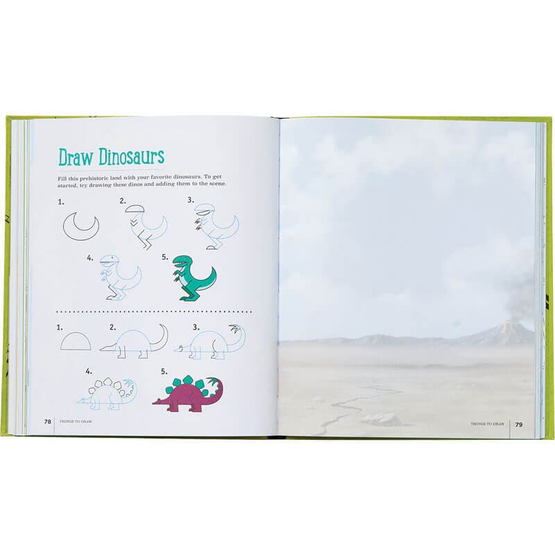 This illustrated book of creative things to draw encourages kids to flex their skills by using open-ended art prompts, drawing games, tips, and how-to’s. From prompts like “draw what you would pack for your dream vacation” to step-by-step lessons for drawing a penguin, kids can grow their illustration skills and find inspiration. They’ll also learn how to make popup cards, put together upcycled art, rejuvenate broken crayons and more.
