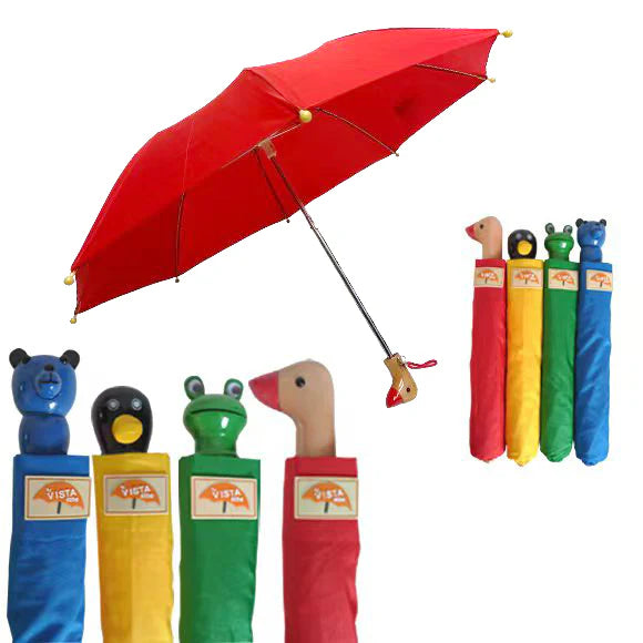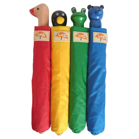 Make a rainy day... Fun! Choose from our cuddly friends (Red Duck, Yellow Penguin, and Blue Bear). They all feature a safety runner and manual folding making it easier to bring out and put away our cute little friends. The handle is made of natural wood.