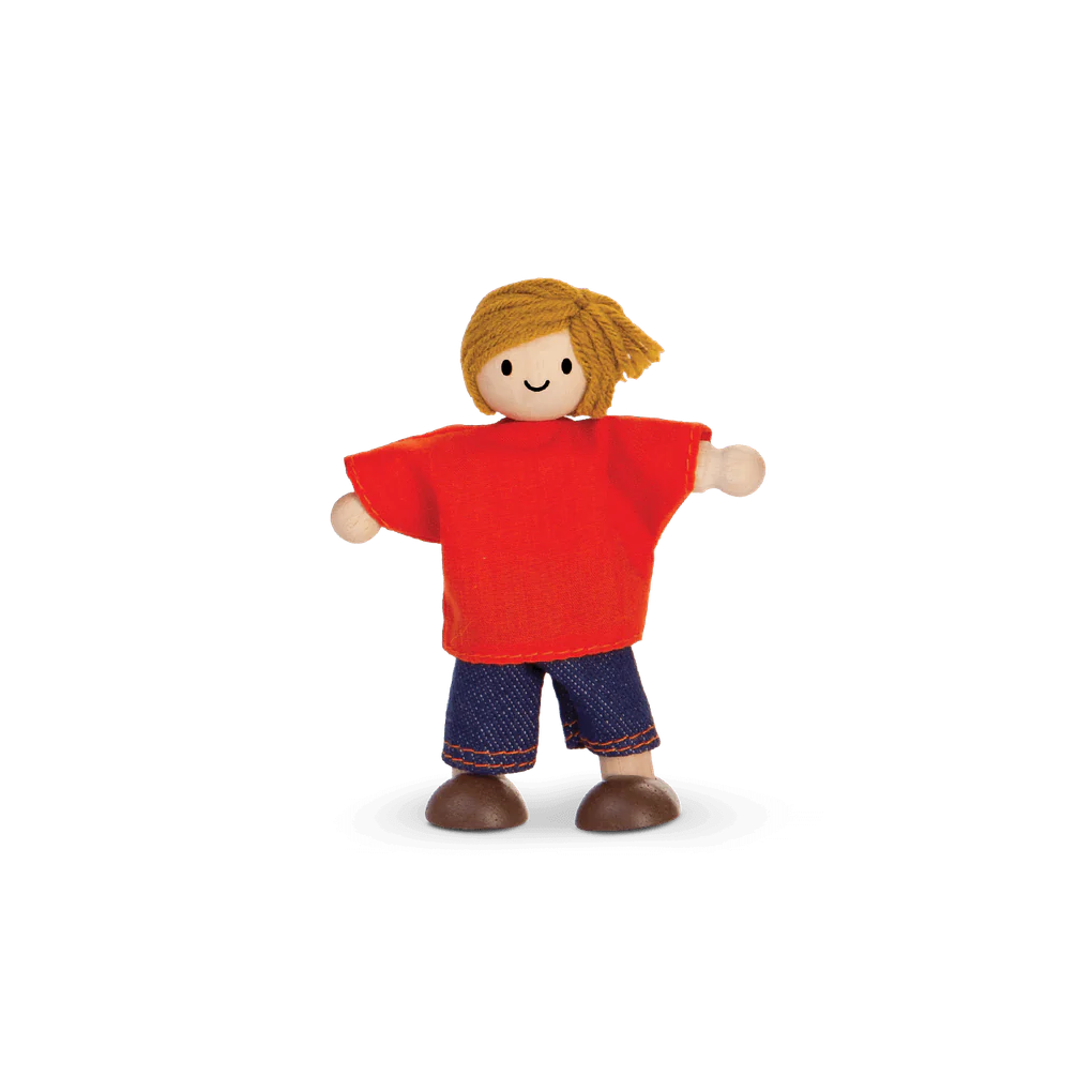 These dolls are sold individually so kids can create a group of dolls to represent their own unique family make up!  All doll heads and bodies are made of solid wood. Arms and legs are wire that can be easily shaped. Compatible with PlanToys dollhouses.