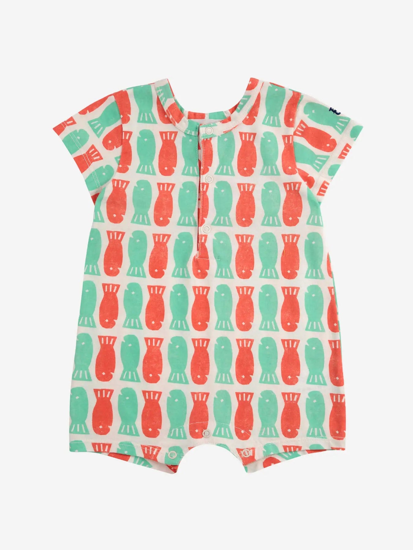 Understated and elegant, this offwhite playsuit is designed for all-day comfort. Made from 100% organic cotton, it features short sleeves, a dropped shoulder, and a loose fit with a relaxed crotch. Front and crotch snap fastenings ensure ease of wear, while embroidery details add a charming finish. Responsibly crafted in Spain.
