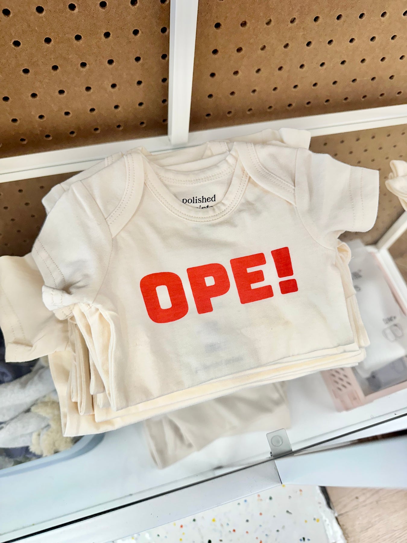 The Ope! newborn baby onesie was designed to be the perfect baby gift for little Midwest cuties everywhere. An everyday baby bodysuit that is gender neutral, simple and fun it's a go-to baby shower gift or coming home outfit.