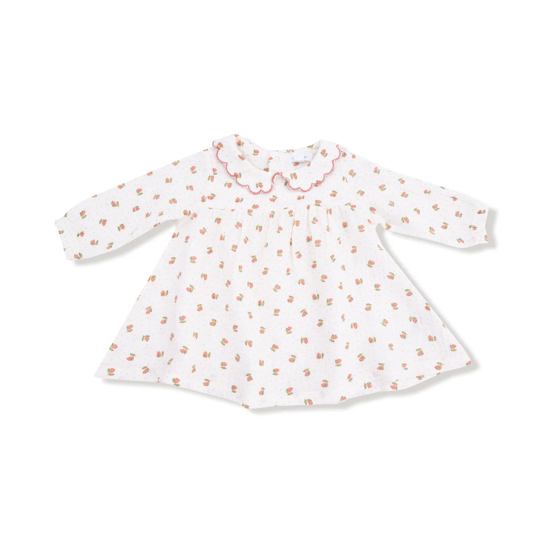 Twirl into fall with Angel Dear's Long Sleeve Petal Collar Dress crafted from soft organic cotton muslin, paired with a matching bloomer for a perfectly classic look. The delicate petal collar adds timeless charm, while the bloomer keeps things comfy and cute—ideal for all your little one’s cozy fall and winter moments.