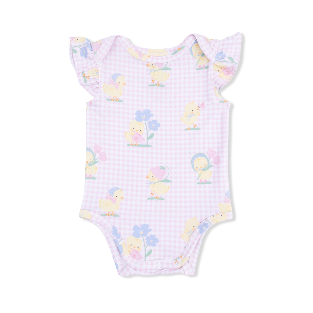 Pink Vintage Spring Ducklings Ruffle Sleeve Bodysuit