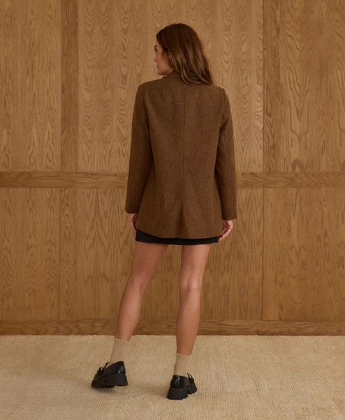 Double Breasted Blazer with a notched collar, button closure, and two front pockets—a refined and sophisticated way to elevate your outfit.