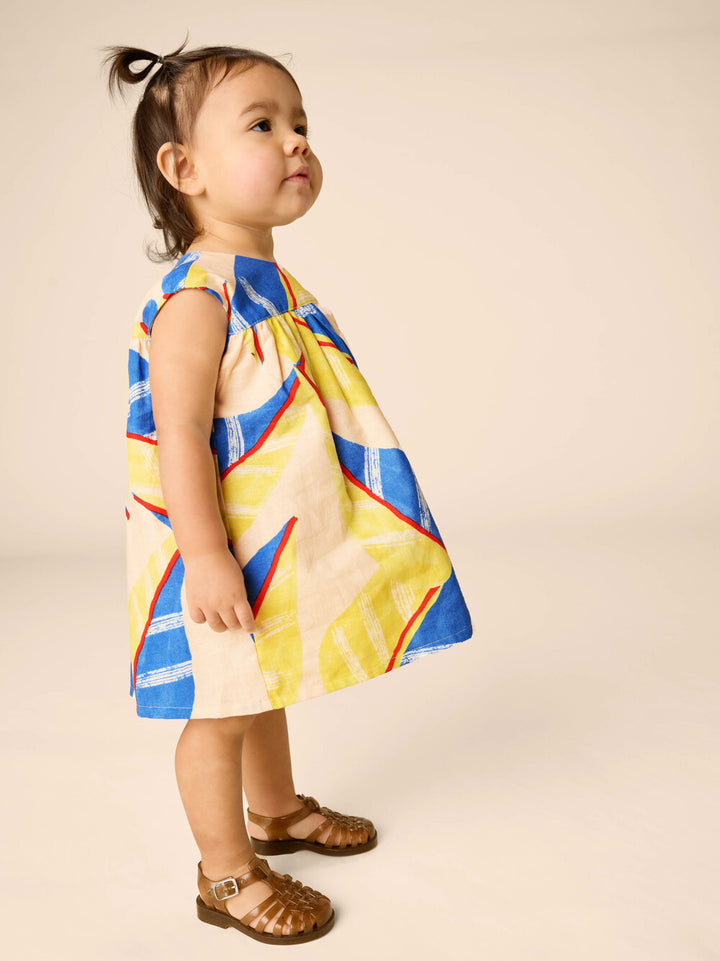She'll shine in this vibrant tropical print from our Brazil collection! Designed for fuss-free comfort, this adorable set features a sweet ruffle detail and darling Empire waist--offering extra comfort for little bellies. Matching bloomers complete the look, making this charming set an effortless go-to for sunny days. Crafted from a breathable cotton-linen blend to keep little ones cool and comfy. Falls just below mid-thigh.