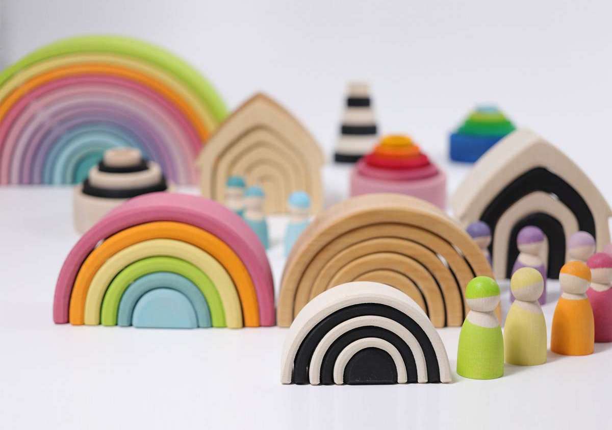 Wooden Rainbow Friends- The Perfect sturdy little friends to play in all the Grimm's world's your little one creates!