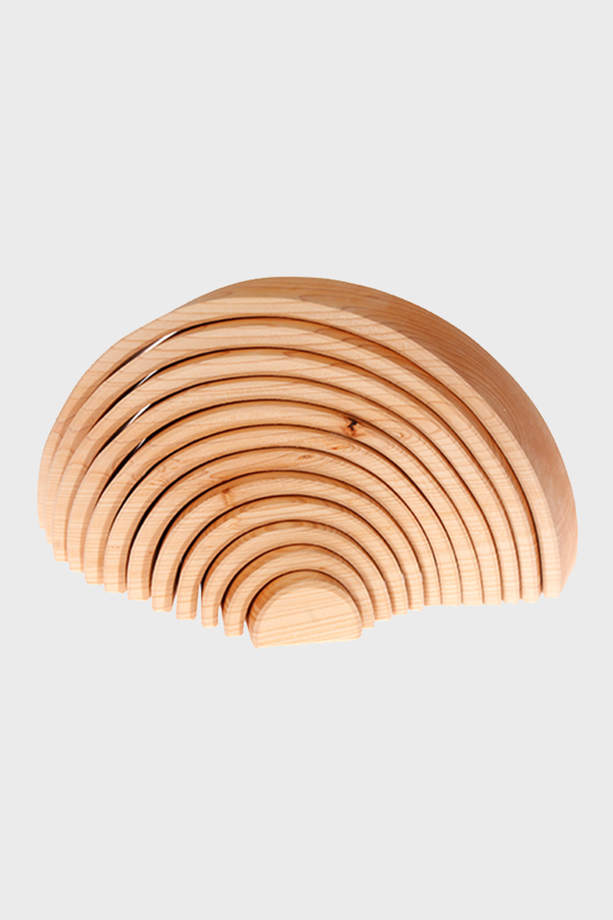 The Grimm's rainbow is arguably one of the most beautiful children's toys ever created. Hand crafted in Germany from a single slice of tree trunk (which for the large rainbows has been growing for a minimum of 40 years)!  Not only is it meant to be used as a toy for stacking, nesting or any other imaginative idea a child can dream up, it's also perfect for brightening up any room. This is an heirloom to love and treasure for years to come.